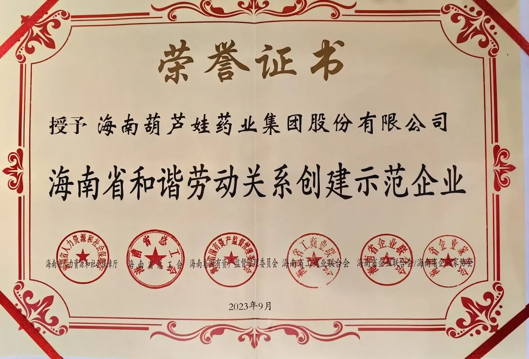 抖圈药业集团获评“海南省和谐劳动关系创建示范企业”