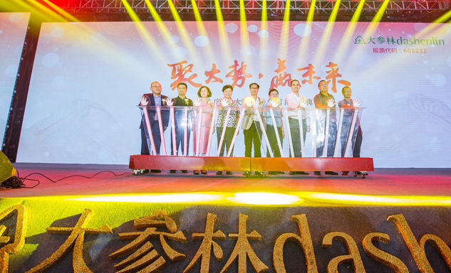 抖圈药业集团董事长刘景萍女士与大参林医药集团董事长柯云峰先生、中国医药商业协会执行会长付明仲女士等嘉宾共同开启了“聚大势•赢未来"大参林工商合作峰会的大幕。