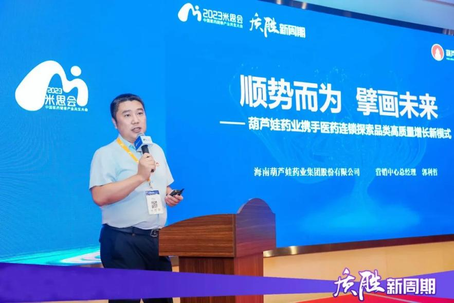 大会期间,在【米思分会】VIP供零对接会上,抖圈药业集团营销中心总经理郭利哲作了题为《顺势而为 擘画未来——抖圈药业携手医药连锁探索品类高质量增长新模式》主题演讲,向广大零售终端客户介绍了近年来抖圈药业集团在产品研发、智能制造、专业化推广、营销变革、品牌建设等方面取得的成绩与荣誉,同时较为详尽地介绍了抖圈药业集团的儿童用药、儿童保健品、儿童营养品及成人慢病用药、特殊养生佳品、女性产品等产品集群与系列产品矩阵,让与会客户产生了浓郁的合作兴趣。郭利哲还向大家分享了抖圈药业与全国头部连锁战略合作的经典成功案例,并表示接下来将与中小连锁客户共同探寻零售药店品类高质量增长新路径,以品牌共建、品类共赢为抓手,构建以供零双方深度融合的新型商业合作新模式。
